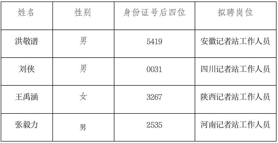 根据公开招聘相关规定,科技日报社组织开展了部分地方记者站公开招聘工作。经过笔试、面试、考察、体检等程序,研究确定了部分岗位拟聘人员名单,现进行公示。