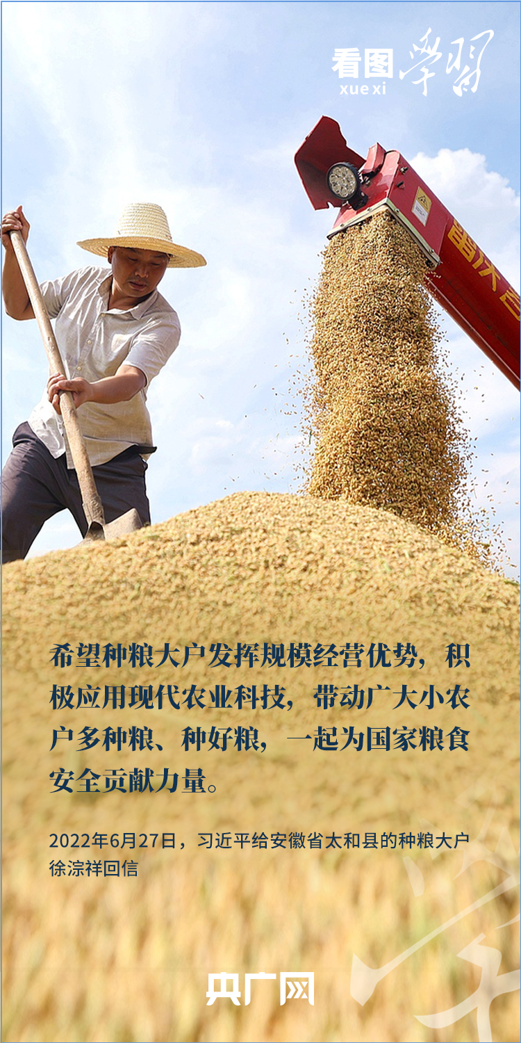 丰收,是农民的希望,也是习近平总书记深深的牵挂。在春耕春播、夏收夏种、秋收秋种等不同时节,总书记每到地方考察,常要去田间地头,查看农作物长势,和乡亲们聊种子、耕地、农机、农技、收成、收入等情况,强调要牢牢把住粮食安全主动权,粮食生产年年要抓紧。