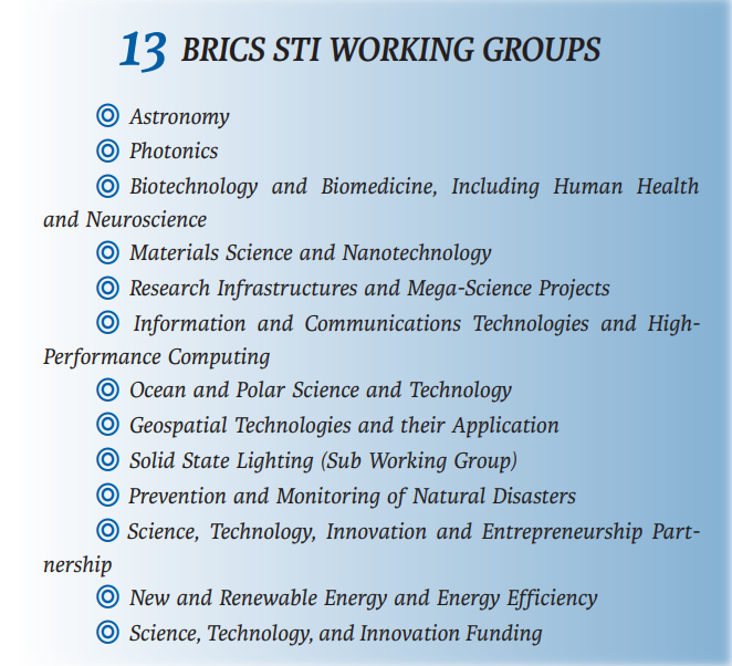 In addition to the thematic working group collaborations, fundamental STI cooperations are essential to BRICS.