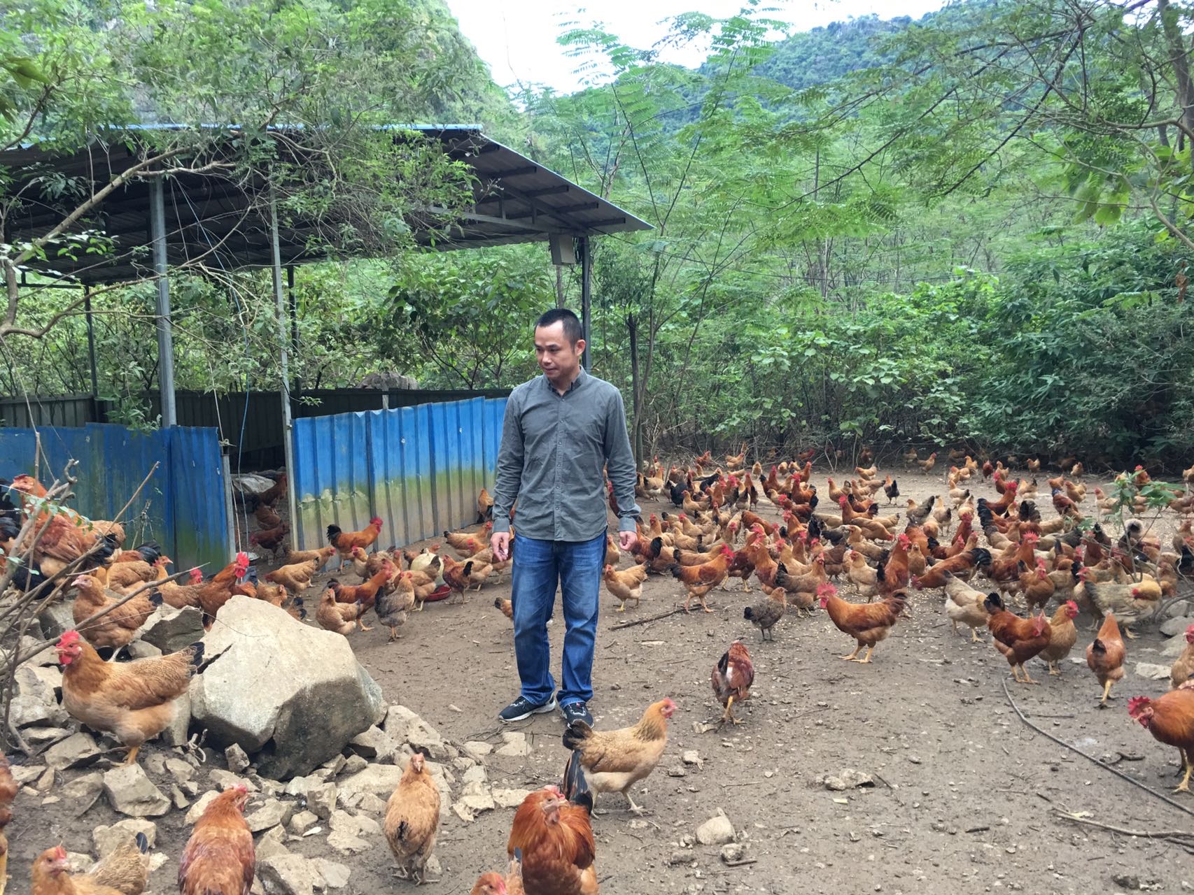 阳春时节,广西南宁市上林县巷贤镇的一处种养基地里,成片的杨梅树枝繁叶茂,挂满了紫红色的杨梅果子,杨梅树下成群的鸡自由自在地啄食或嬉戏。