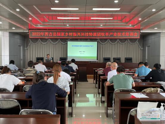 会后,科技特派团成员围绕牧草产业的发展开展了技术服务培训。张英俊围绕“紫花苜蓿套作青贮玉米高效生产技术”阐述了技术的先进性、引领性及技术要点;国家牧草产业技术体系青贮技术岗位团队成员吴哲副教授,围绕“肉牛的青贮饲料调制与饲喂方法”讲授了家畜的营养需求、青贮饲料的调制等技术;国家牧草产业技术体系放牧草地管理与草畜平衡岗团队成员、中国农业大学刘楠副教授围绕“草地可持续放牧利用理论与技术”从国内外草畜平衡的进展、放牧草地管理技术、草畜高效生产等方面进行了授课。