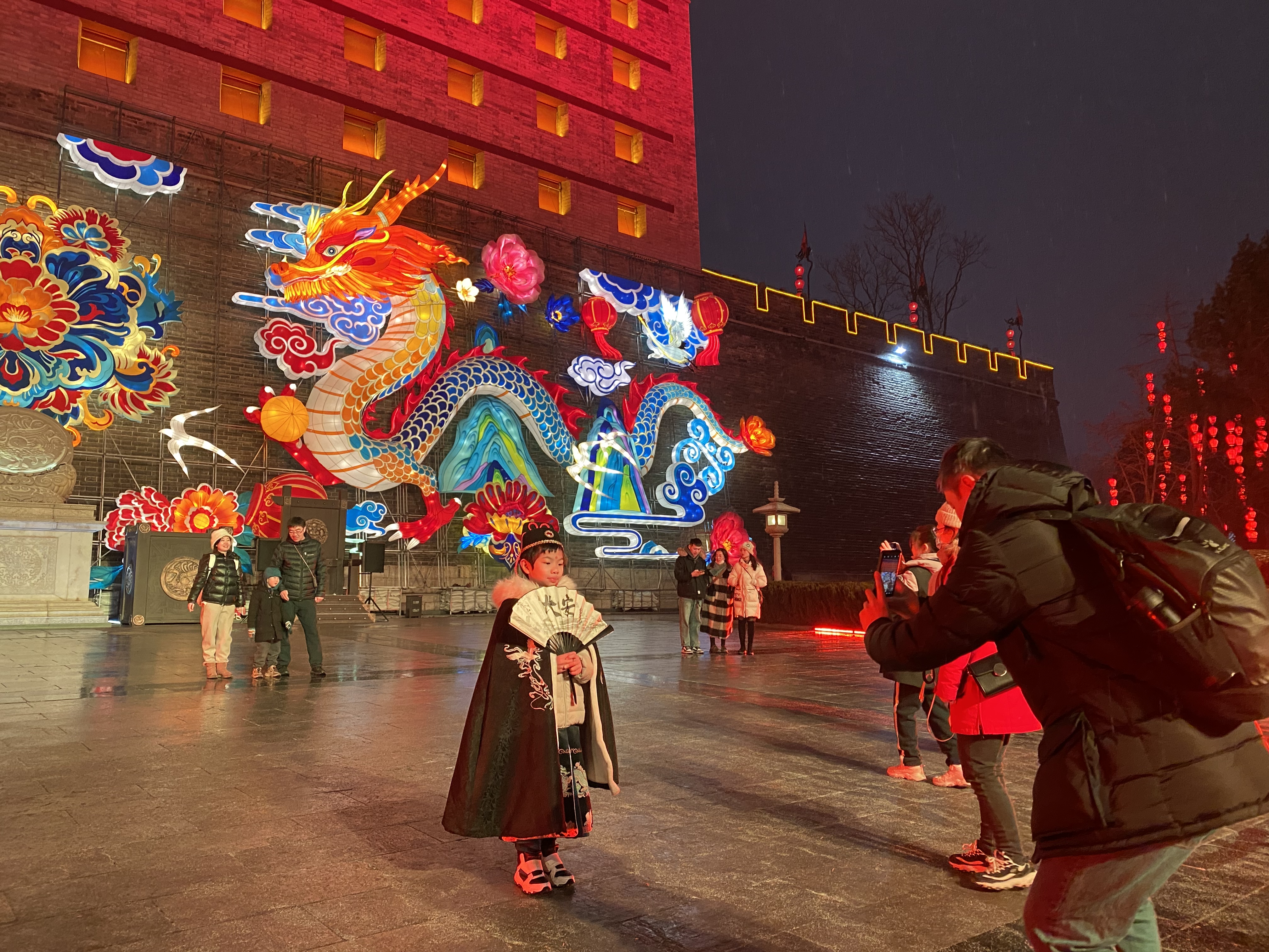 既有“中华第一龙”美称的红山玉龙,还有陕西历史博物馆的镇馆之宝——赤金走龙……各具特色的37条中华龙灯组齐聚西安城墙,有机融合了经典古诗词与非遗制灯工艺,营造出了“一步一绝句,一灯一诗词;龙行五千年,华灯满城彩”的节庆文化氛围。