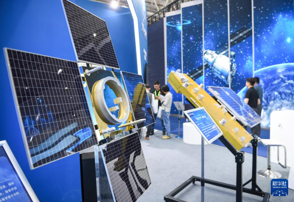 这是4月23日在航天产业成就展区拍摄的“试验一号”卫星模型。新华社记者 杜子璇 摄
