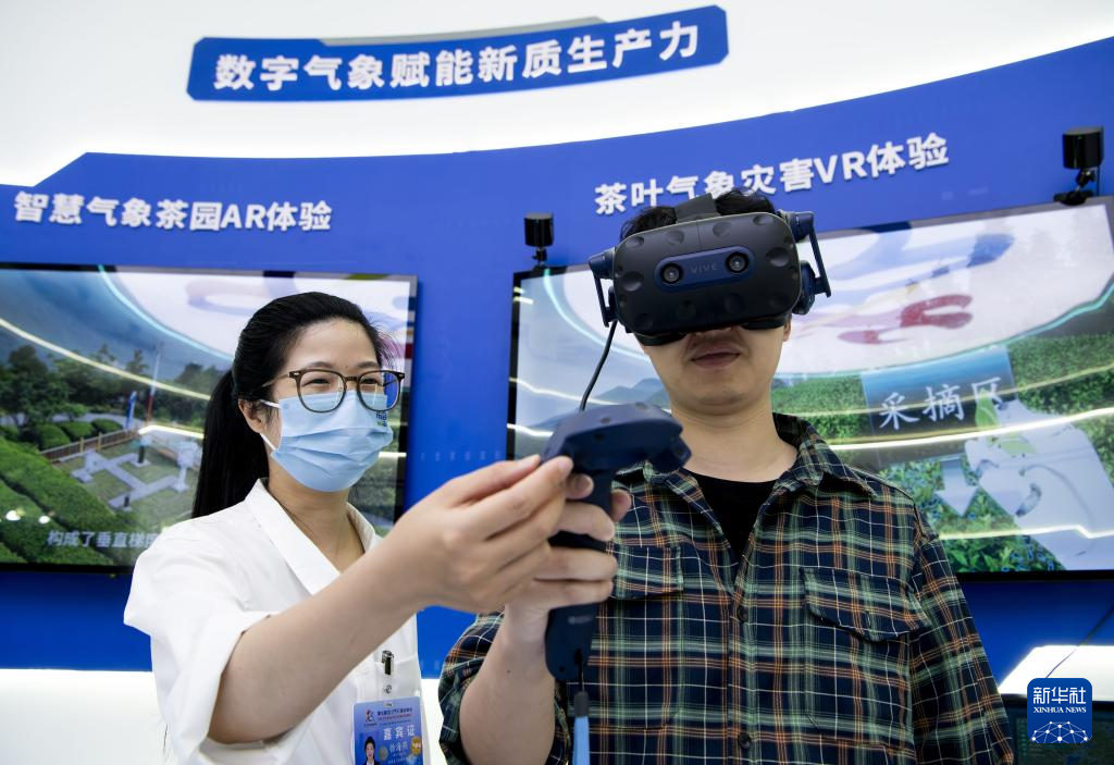 5月23日,一名观众(右)在数字气象赋能新质生产力展台上进行体验。新华社记者 魏培全 摄