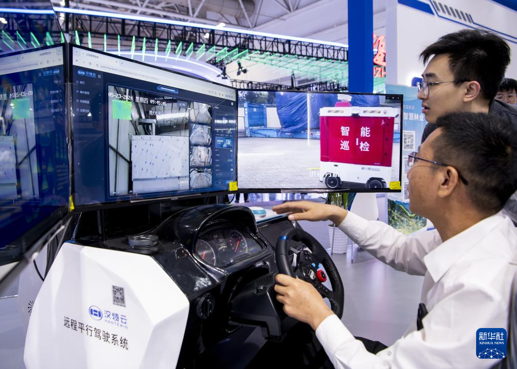 5月23日,一名观众(右下)在体验远程平行驾驶系统。新华社记者 魏培全 摄
