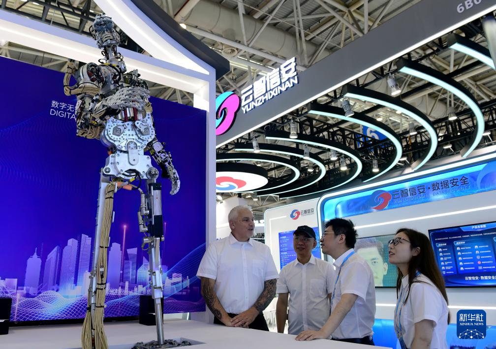5月23日,观众在数字无锡展台上观看大型仿生机器人演示。新华社记者 魏培全 摄