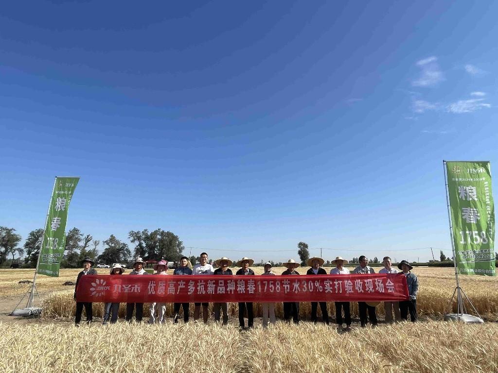 近日,由新疆维吾尔自治区农业科学院(以下简称“新疆农科院”)、九圣禾种业股份有限公司共同选育的春小麦高产品种“粮春1758”,通过联合专家组节水鉴定:在节水30%条件下,该品种示范田亩产达508.32公斤,较主栽品种“新春37号”显著增产17.11%。这一成果将有望实现水资源高效利用与粮食稳产增产的协同突破。