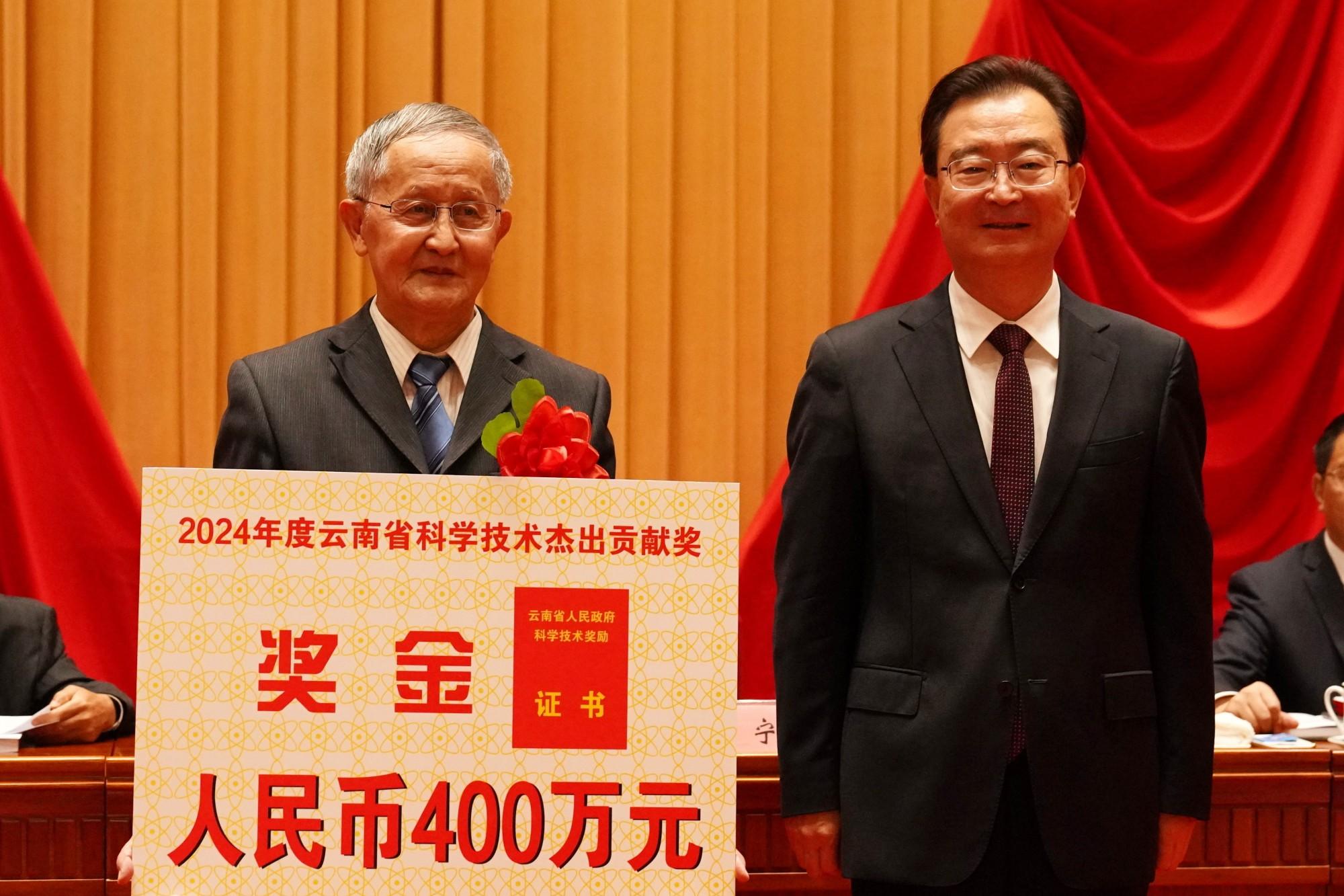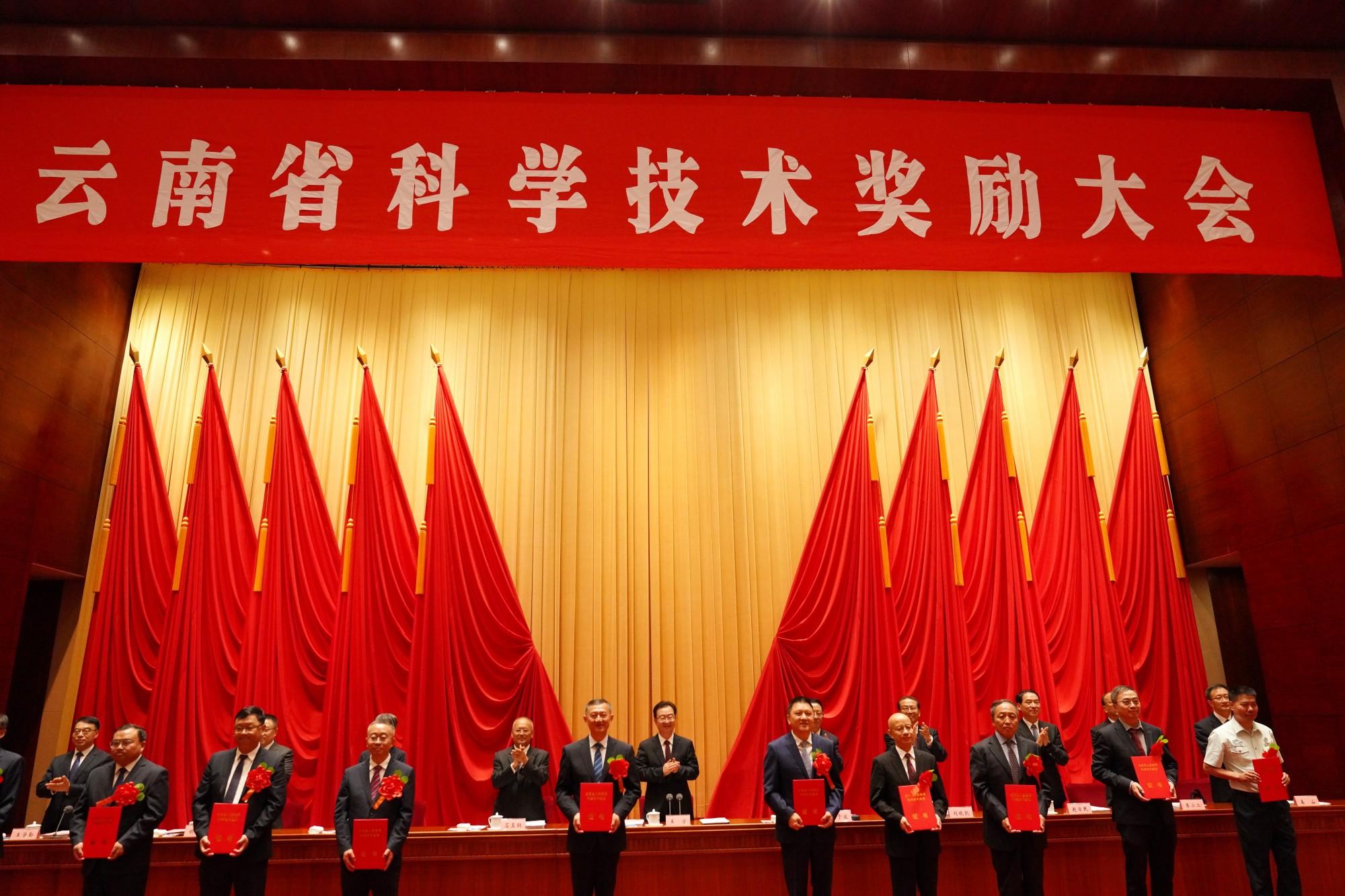 大会宣读了《云南省人民政府关于2024年度云南省科学技术奖励的决定》,授予张喜光云南省科学技术杰出贡献奖,授予SijunZheng云南省国际科学技术合作奖。此次共表彰了180个项目及个人,包括自然科学奖45项、技术发明奖8项、科学技术进步奖125项。其中,“茶树基因组的变异进化”等9项成果获自然科学奖一等奖,“磨矿系统可视化能量配置及其耐磨材料适配技术”获技术发明奖一等奖,“中老铁路工程关键技术”等4项成果获科学技术进步奖特等奖。
