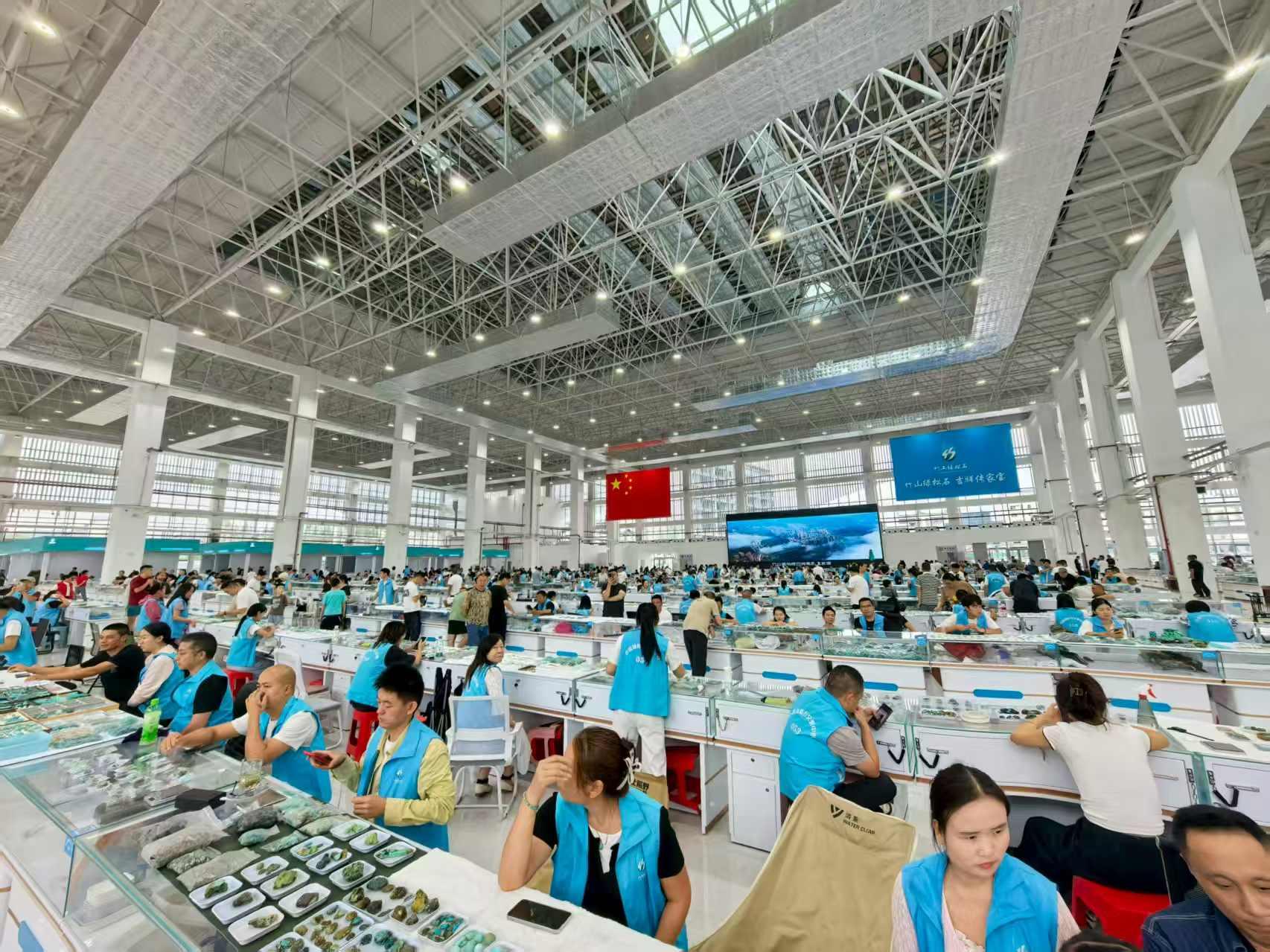 今年5月1日,竹山国际珠宝交易中心开业,标志着竹山绿松石产业进入集群化、国际化发展的新阶段。该中心占地面积1.1万平方米,首日即吸引600余家商户入驻,游客占比超过四成,线上线下销售额突破1000万元。交易中心采用“交易、展示、直播三区联动”的运营模式,整合设计、加工、检测全产业链资源,并设立专业鉴定机构,实现“一物一证”保真体系,为消费者提供可靠保障。