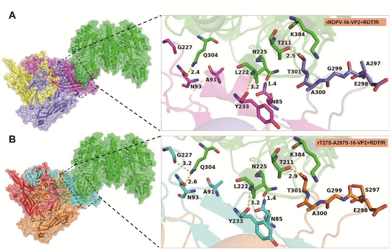 “研究团队通过系统比对2016年前后的病毒株基因序列,发现VP2衣壳蛋白第27位苏氨酸(27T)和第297位丙氨酸(297A)的突变是区分强弱毒株的核心分子标志。”论文通讯作者、中国农业科学院特产研究所白雪告诉科技日报记者,为明确这两个位点的功能,研究团队利用反向遗传学技术构建了重组病毒。