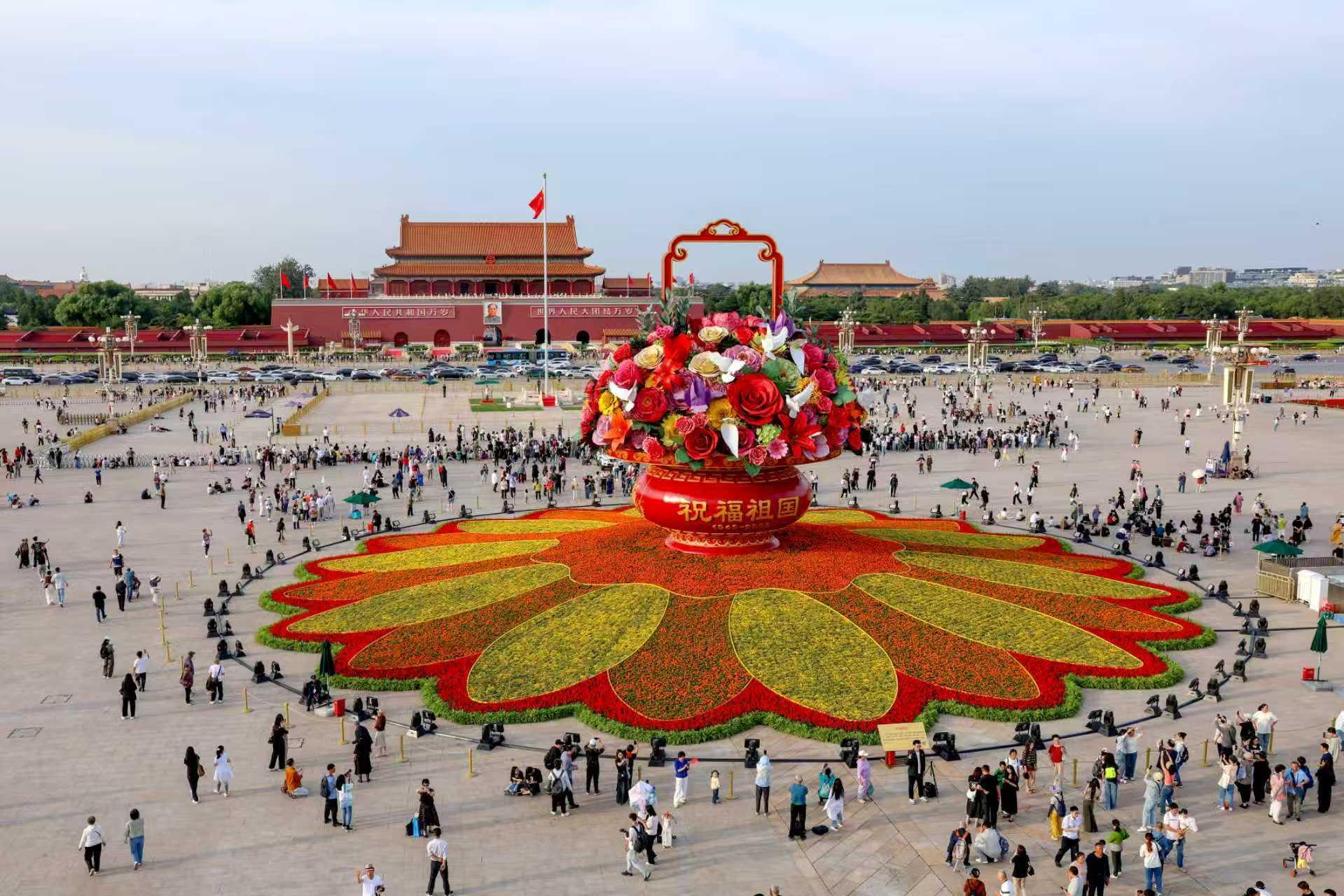 9月25日,2025年“祝福祖国”巨型花篮正式完工,亮相天安门广场与市民共度佳节。同时,9月25日晚,“祝福祖国”巨型花篮正式亮灯。