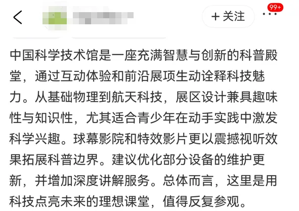 来源:科技日报综合中国科学技术馆、携程网友评论等