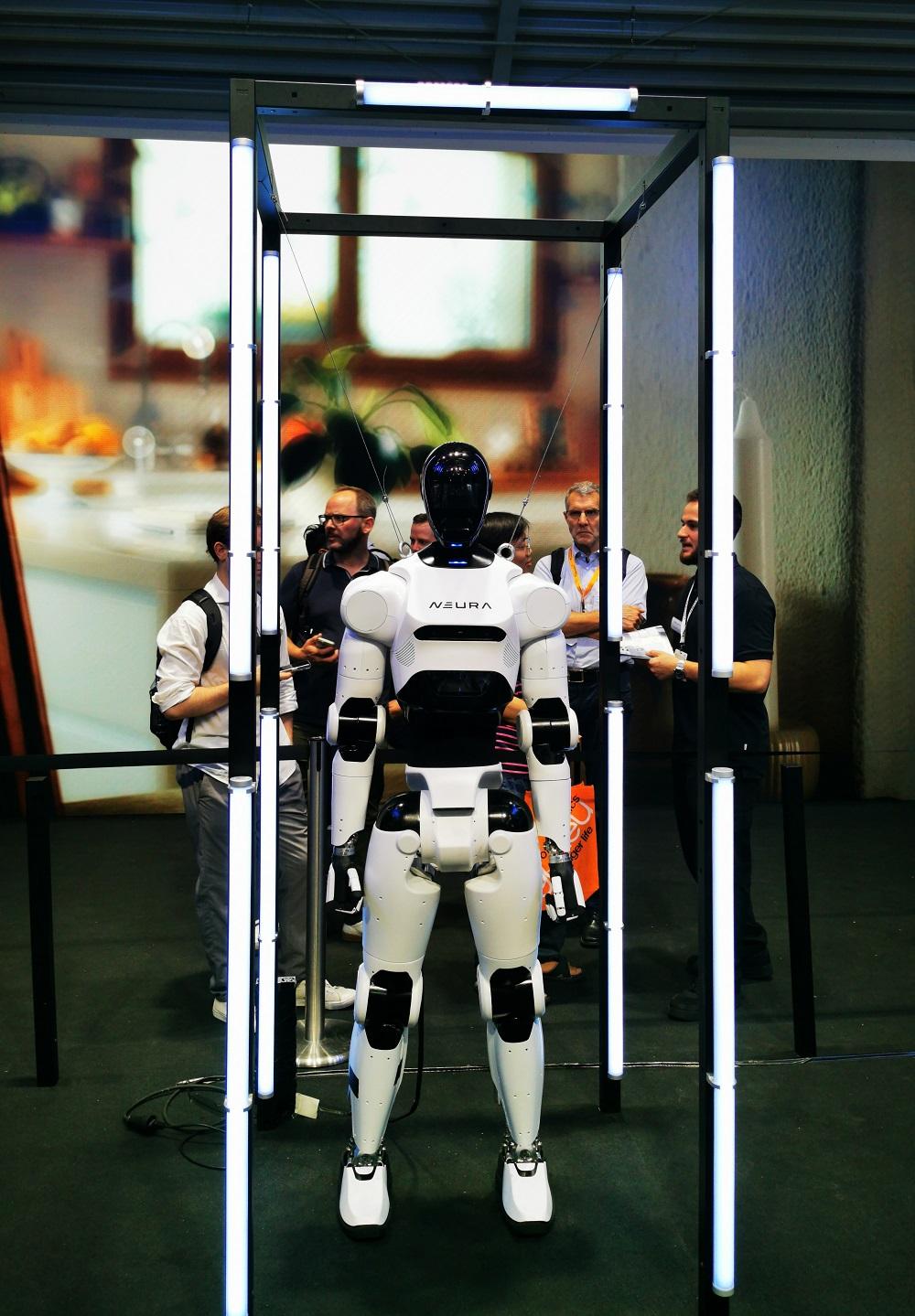 展会上,德国初创企业NEURA Robotics高调发布了其人形机器人4NE1 Gen 3。据介绍,这款机器人身高近1.8米,可举起高达100公斤的重物,拥有先进的AI技术和360度全方位感知能力,无需安全笼即可与人类安全协作。这款专为家庭、工作场所和服务环境设计的机器人计划于今年晚些时候上市。NEURA雄心勃勃的目标是到2030年交付500万台机器人。