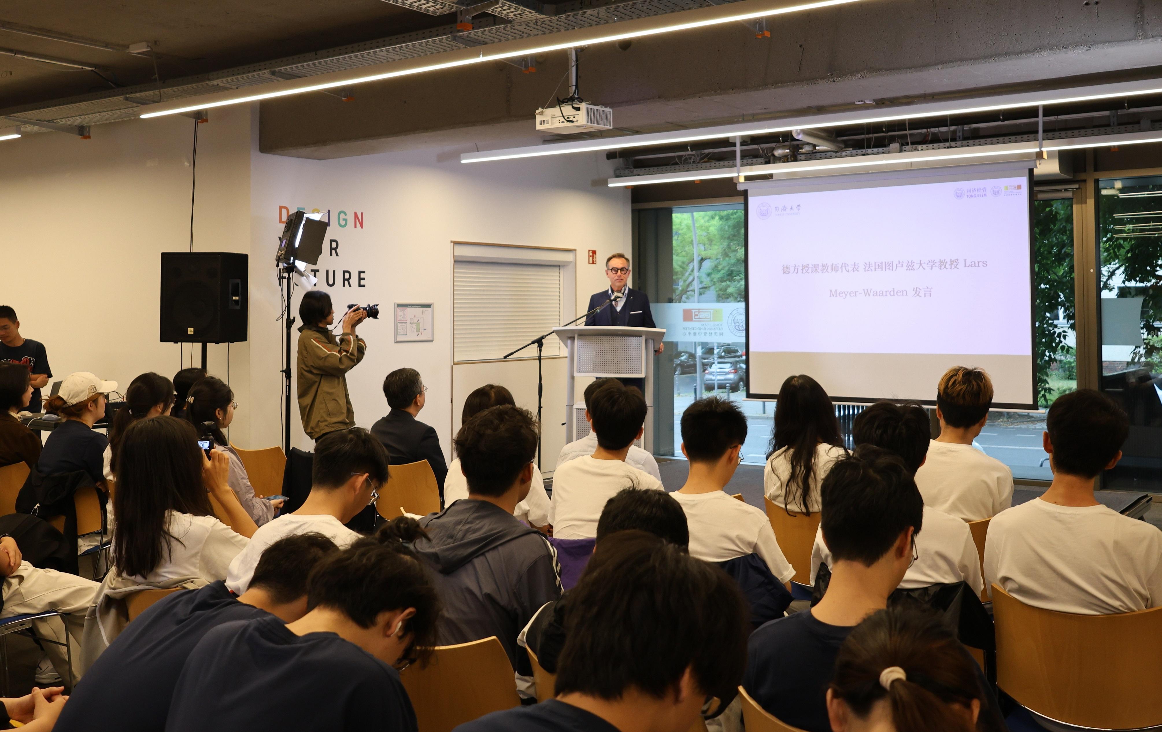 中国驻德国大使馆教育处参赞周志强在致辞中表示,一个多世纪以来,同济大学始终坚持对德合作的传统,开创了多个中德高教合作示范项目,成为两国教育、科技和文化交流的重要窗口和桥梁。高等教育合作是中德双边关系的重要组成部分。踏上德国这片土地,走近德国民众,大家才能体会到,只有在互动和交流当中,文化的碰撞才得以更好地升华,文明的价值才得以更好地体现。青年是国家的未来,是中德友谊的桥梁,希望大家能不负韶华,勤于思考,勤于实践,为促进中德合作、共同发展贡献力量。